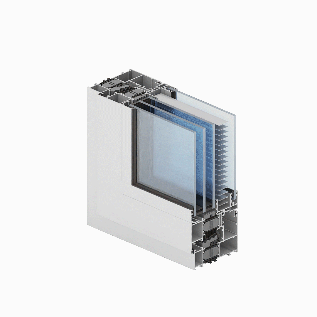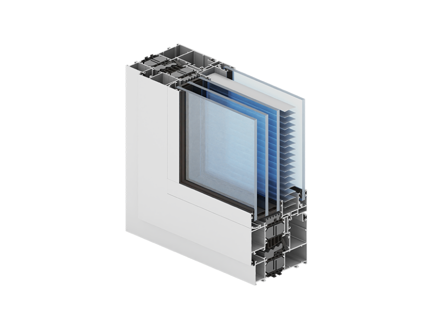 - construction of the system extended with the possibility of integrating the internal shutter between the main glass and the additional external glass